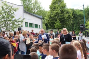 Besonderer Gast des Tages war, neben den Kindern, Herr Bürgermeister Bittner, der als Pate des Programms „Schule ohne Rassismus“ gekommen war. Da passte es, dass pünktlich zum Schulfest die Anerkennung mit der Post zugeschickt wurde. Die Schulgemeinschaft freut sich nun auf die offizielle Titelverleihung nach den Sommerferien.