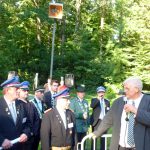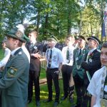 Bei schönsten frühherbstlichen Sonnenschein traten am Vorabend des ersten Duells um die Stadtschützenkönigswürde in Herdringen die Jungschützenregenten in Holzen an. Kurzfristig hatte der Wennigloher Kandidat noch absagen müssen, so das es ein rundes Dutzend Bewerber waren, die der Holzener Brudermeister Thomas Lepping und Bürgermeister Hans-Josef Vogel begrüßten. Vogel sprach von der langen Tradition der Ortsteile, die auch die Jungschützen weiter tragen, aber auch von dem neuen Kapitel der Geschichte, das jetzt aufgeschlagen werde, „weil wir zusammen gehören“. Allerdings habe die Stadt Arnsberg nach 40 gemeinsamen Jahren gegenüber den Ortsteilen erst eine Identität wie ein Vierjähriger gegenüber einem 84-Jährigen. Dann forderte er die „zwölf Apostel der Jungschützen“ auf, sich unter der Vogelstange zu beweisen.