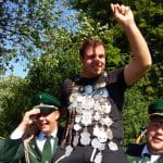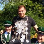 Linnepe. Nach einem spannenden Dreikampf durchweg junger Kandidaten sicherte sich in Linnepe Jannik Jaschewski die Königswürde. Der Aar fiel bei strahlendem Sonnenschein um 10.35 Uhr im 103. Schuß. Als Regentin wird ihm seine Freundin Lisa Ortjohann zur Seite stehen. „Heute morgen habe ich noch nicht damit gerechnet, aber jetzt werden wir das rocken“, sagte der 25-jährige Linneper, der als Bankkaufmann bei der Volksbank Sauerland arbeitet und in seiner Freizeit auch als Fußballer, Schiedsrichter und Tennisspieler aktiv ist.
