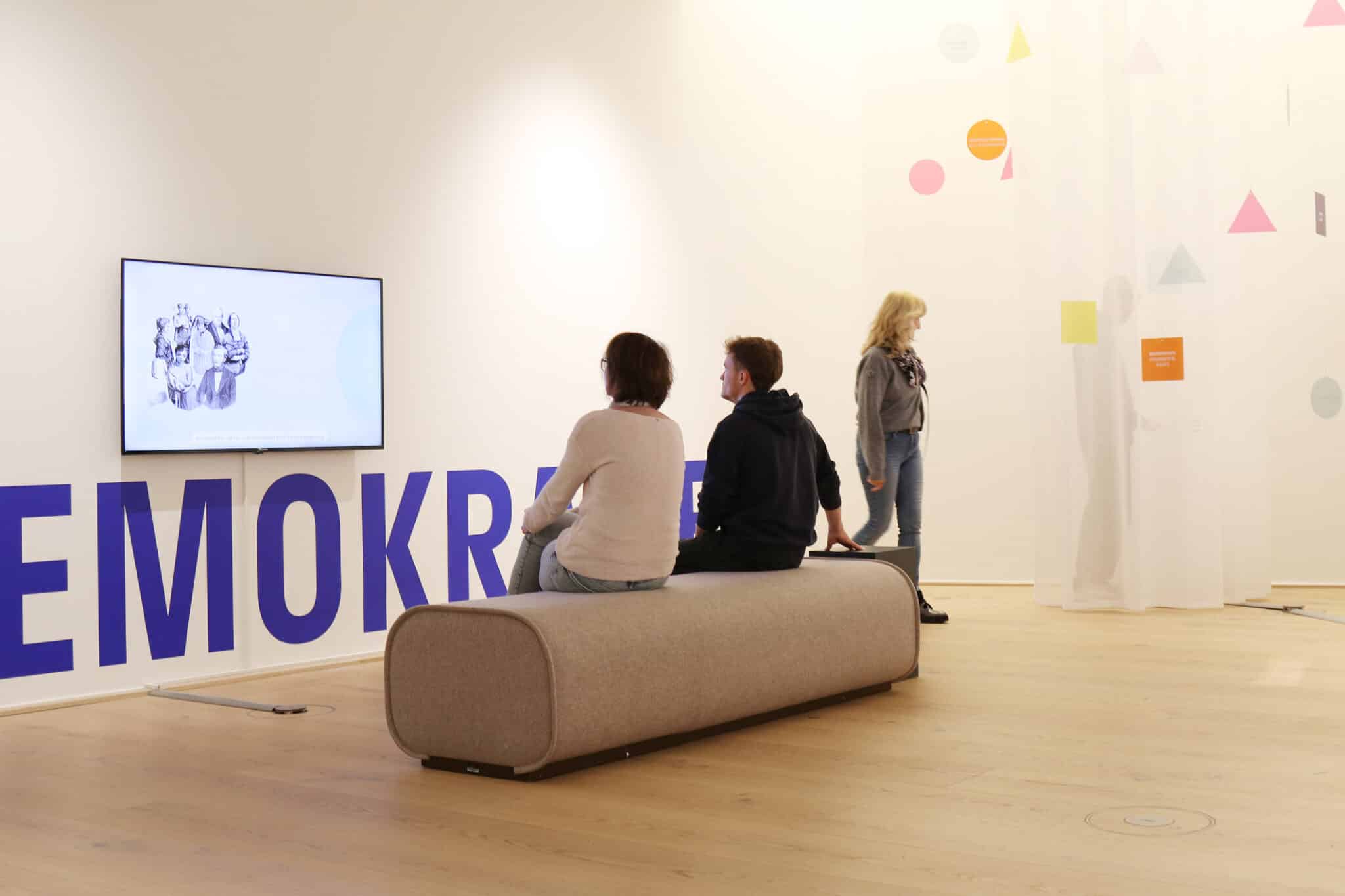 Im ers­ten Aus­stel­lungs­raum wer­den die Säu­len der Demo­kra­tie erklärt (Foto: Alex­an­dra Zander)