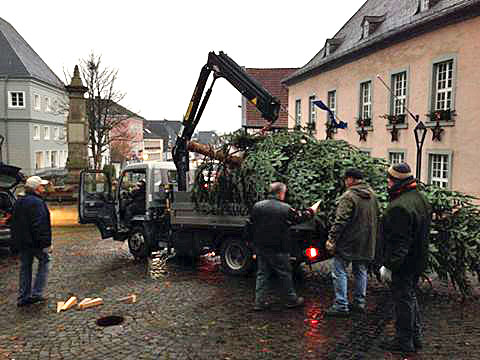 Arnsberg. Früher war es Angelegenheit der Stadt, die großen Stadtteile mit einem stattlichen Weihnachtsbaum zu schmücken. Das war einmal. Diese Wohltat ist bereits vor Jahren dem Sparstift zum Opfer gefallen. Seitdem ist auch hier bürgerschaftliches Engagement gefragt. Das hat auch in diesem Jahr wieder geklappt. Nach Neheim und Hüsten ist jetzt auch in Alt-Arnsbergs Guter Stube der traditionelle Weihnachtsbaum angekommen.