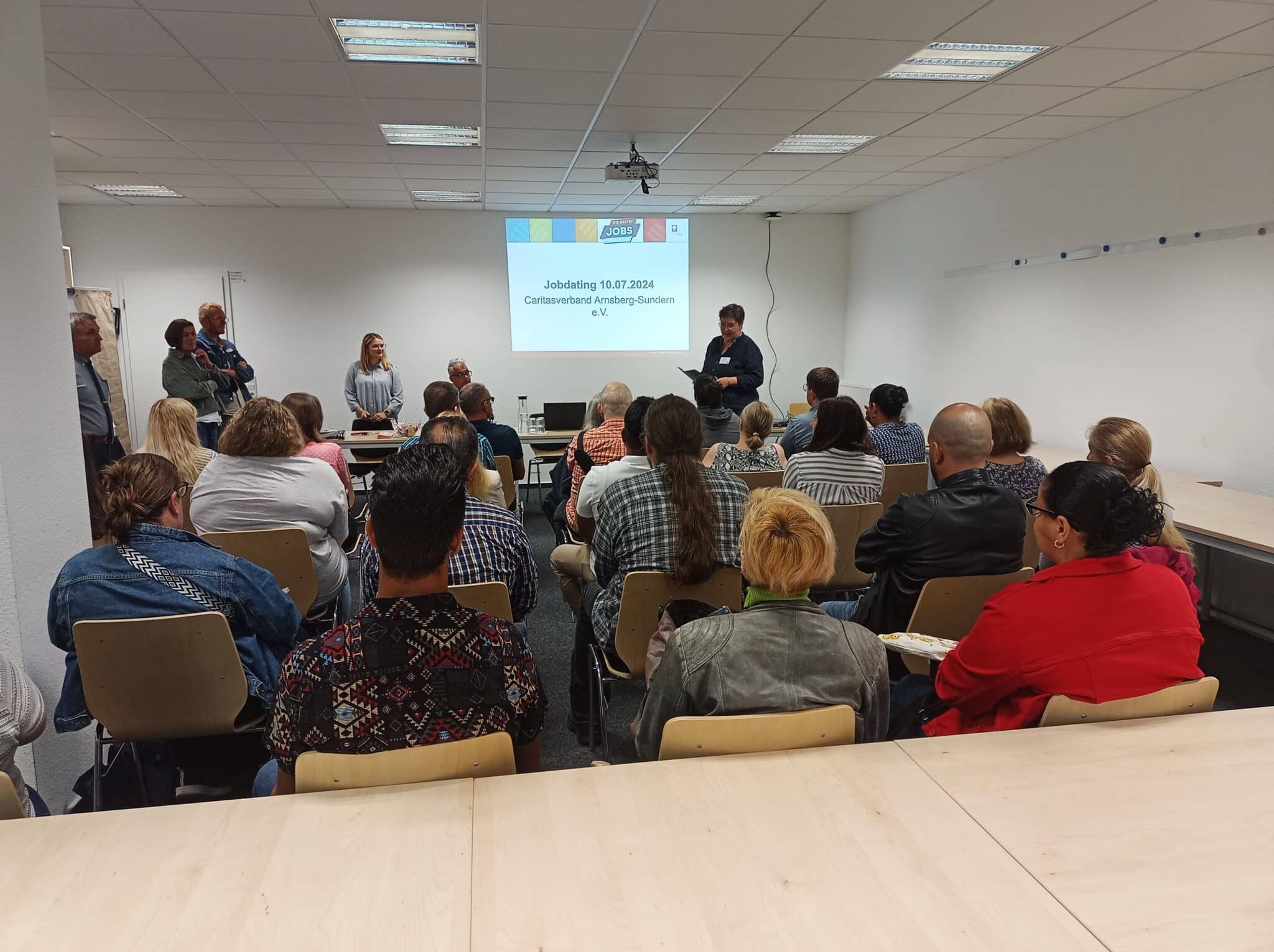 Für Kundinnen und Kunden aus dem Jobcenter der Stadt Arnsberg eine völlig neue Möglichkeit bei der Jobsuche: Statt eines zeitaufwändigen Bewerbungsverfahrens waren beim ersten Job-Dating Interessierte aus dem Lager der Arbeitgeber:innen sowie der Arbeitsuchenden anwesend. Kontakte mit den lokalen Firmen und Betrieben konnten in direkten Gesprächen geknüpft werden. Für die Organisation und der Begleitung der Arbeitsuchenden standen Mitarbeitende des Jobcenters bereit. Die ersten Unternehmen und Betriebe aus der Stadt Arnsberg, die die Möglichkeit der direkten Kontaktaufnahme nutzten waren die Firmen Interprint, Schroth, McDonalds sowie der Caritas-Verband Arnsberg-Sundern.