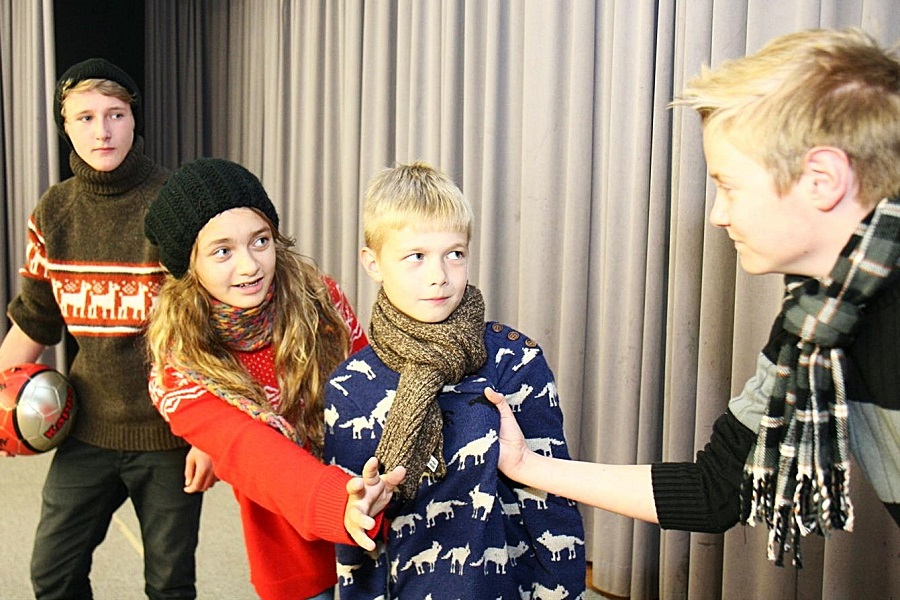 Die zwölf­jäh­ri­ge Bal­verin und ihr elf­jäh­ri­ger „Thea­ter­kol­le­ge” Mar­vin Göd­de aus Mel­len, die bei­de die Klas­se 6a des Städ­ti­schen Gym­na­si­ums in Sun­dern besu­chen, sind im Weih­nachts­mu­si­cal in ihren ers­ten Haupt­rol­len zu sehen. Bei­de haben als Dar­stel­ler des Fest­spiel­ver­eins bereits Erfah­run­gen gesam­melt. Wäh­rend Celi­na dem Ensem­ble seit Ron­ja Räu­ber­toch­ter (2011) ange­hört, wirk­te Mar­vin erst­mals in einer Neben­rol­le im „König der Löwen” (2012) mit. Regis­seu­rin Anke Lux war es, die auf Celi­na und Mar­vin zuging, da die bei­den Kin­der ihre Wunsch­be­set­zung für die­ses Stück sind. „Die Bei­den machen ihre Sache rich­tig gut”, schwärmt Anke Lux. „Es macht ja auch viel Spaß. Ich kom­me ger­ne zu den Pro­ben”, ver­rät Celi­na. „Am bes­ten fin­de ich es, die Sze­nen zu spie­len, weil ich mich dabei ent­fal­ten kann”, klingt die jun­ge Dar­stel­le­rin wie ein Pro­fi. „Aber ich tan­ze auch sehr ger­ne.” Die Arbeit in die­sem klei­nen Ensem­ble sei viel ent­spann­ter und ganz anders als in dem gro­ßen Ensem­ble für die Mär­chen­wo­chen, zieht Celi­na ein Fazit. „Alle sind lus­tig drauf.” Und so muss es schließ­lich auch sein für ein Weih­nachts­stück, in dem es spek­ta­ku­lär, wit­zig und span­nend zugeht. Das sieht auch Mar­vin so, der noch kei­ne Pro­be ver­passt hat.