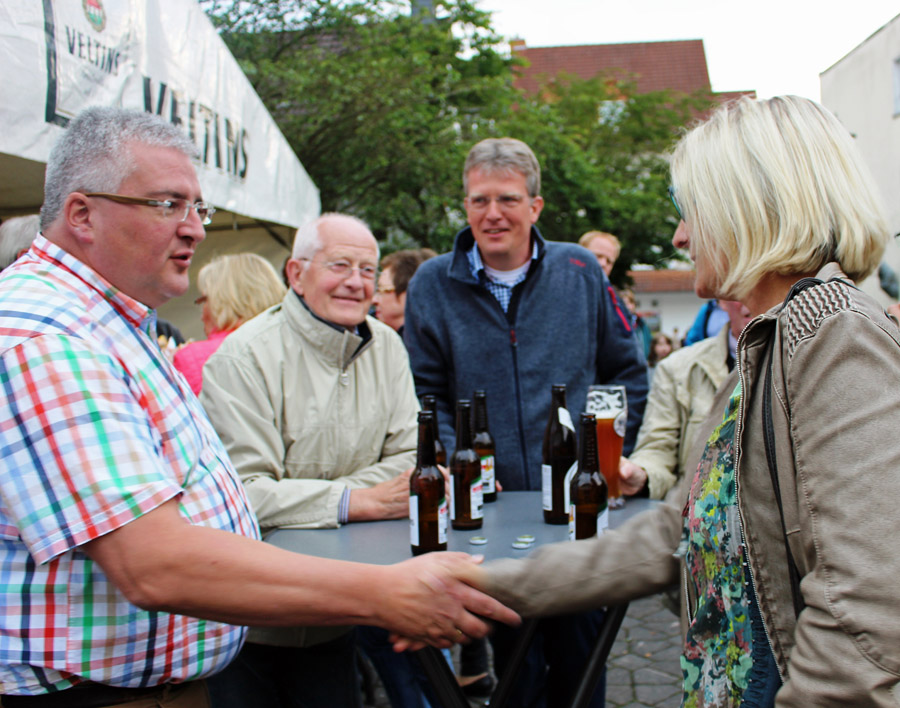 Auch den Dämmerschoppen auf dem Franz-Josef-Tigges-Platz besuchte die Kandidatin – nicht zum ersten Mal. Die Original Kapelle Sauerklang erfreute die Besucher mit zünftiger Blasmusik. Ab 18 Uhr füllte sich bereits der Platz und mit Beginn des Konzerts gab es keine freien Plätze mehr. Die Zuschauer hörten den Klängen begeistert zu und es herrschte eine fröhliche Stimmung. Im Gespräch mit den Musikern erfuhr die Bürgermeisterkandidatin die Hintergründe der vergleichsweise jungen Formation: „Das Besondere an der Original Kapelle Sauerklang ist, dass sich junge Musiker aus verschieden Orten des Sauerlandes in dieser Kapelle zusammen geschlossen haben. Gemeinsam bilden sie ein starkes Team, das Menschen mit seinem umfangreichen Repertoire begeistert.“