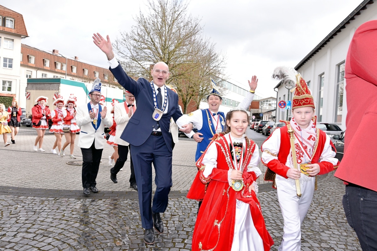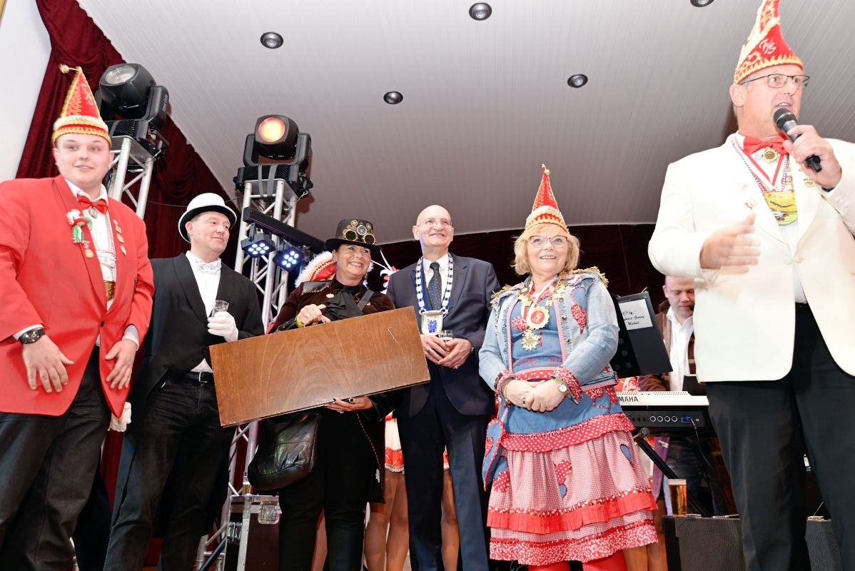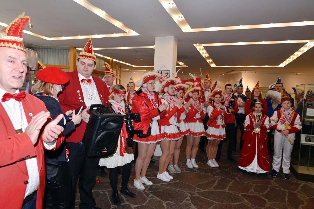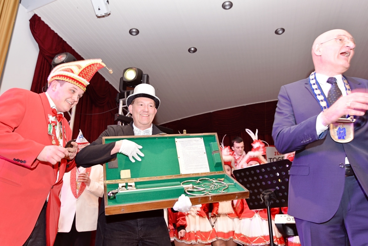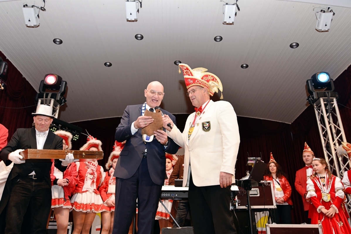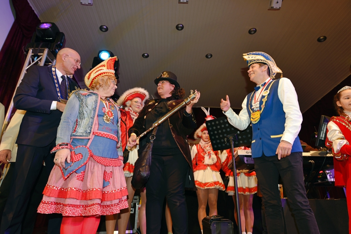 Im Theatersaal der Schützenhalle musste sich Bürgermeister Ralph Brodel der närrischen Übermacht ergeben und rückte den Stadtschlüssel heraus. Die neuen Schlüsselgeister, Edeltraut Volmari und Melanie Fricke hatten ganze Arbeit geleistet! Im Anschluss wurde im Saal noch von Hunderten verkleideter Närrinnen und Narren ausgelassen gefeiert.