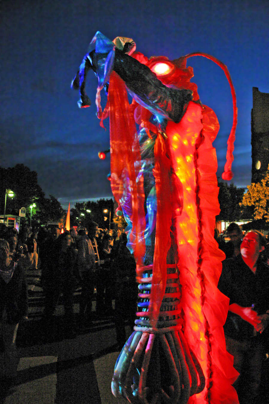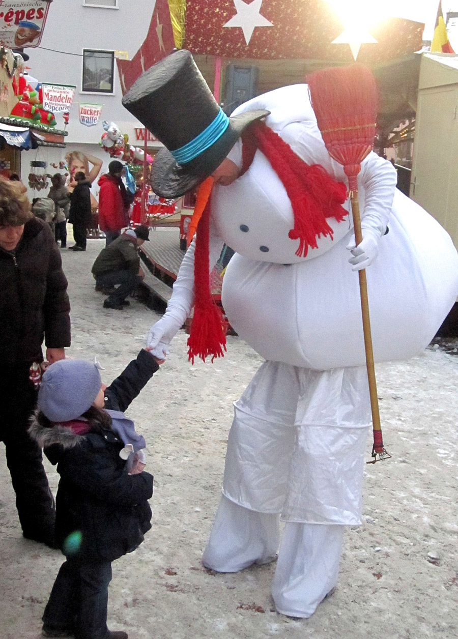 Nach Ende des Wochenmarktes wirft der bekannte Kettensägen-Künstler Martin Schröder die großen und kleinen Sägen an. In diesem Jahr hat er sich vorgenommen, aus einem etwa 1,30 Meter hohen Baumstamm einen Braunbären zu schnitzen. Wer Martin Schröder schon einmal bei seiner Arbeit beobachtet hat, weiss, wie filigran er die schweren Sägen bewegt. Zwischendurch schaut Monsieur Winter in der Neheimer Innenstadt vorbei und mit Einbruch der Dunkelheit kommt Besuch aus dem Reich der Fabelwesen – ein fast vier Meter großer Luminator, der auf den ersten Blick etwas ungewöhnlich aussieht, sich bei näherem Kennenlernen aber als ein äußerst liebenswertes Geschöpf entpuppt, das gern auch für Fotos mit großen und kleinen Besuchern zur Verfügung steht.