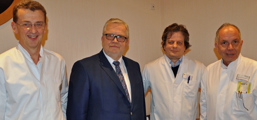 „Das ist ein ganz, ganz wich­ti­ger Schritt, ein auch für die Öffent­lich­keit sicht­ba­res wesent­li­ches Ele­ment der Zusam­men­füh­rung bei­der Häu­ser, nach­dem wir uns in den letz­ten Mona­ten vor allem mit Fra­gen des Gesell­schafts­rechts und der Orga­ni­sa­ti­ons­struk­tur beschäf­ti­gen muss­ten“, sagt Kli­ni­kum-Geschäfts­füh­rer Wer­ner Kem­per, der sich erheb­li­che Syn­er­gie­ef­fek­te ver­spricht, „von denen Pati­en­ten und Ärz­te der Regi­on pro­fi­tie­ren“. Die Kli­nik sei eins der ins­ge­samt zwölf Zen­tren, die sich nach dem Gesamt­kon­zept der Fusi­on auf die vier Stand­or­ten ver­tei­len. Zwei lang­jäh­ri­ge Chef­ärz­te, erfah­re­nes Per­so­nal, her­vor­ra­gen­de Räum­lich­kei­ten und nicht zuletzt die direk­te Nach­bar­schaft zur Chir­ur­gie sei­en bes­te Vor­aus­set­zun­gen, so Kem­per. „Und auch die bekann­ten Ansprech­part­ner für die bis­her in Arns­berg ver­sorg­ten Pati­en­ten blei­ben erhal­ten.“ Man wer­de jetzt auch wei­te­re Behand­lungs­mög­lich­kei­ten anbie­ten kön­nen, für die gewis­se Fall­zah­len vor­ge­schrie­ben sei­en, die die bis­he­ri­gen Kli­ni­ken allei­ne nicht erreicht haben, sieht  Dr. med. Kars­ten Schul­mann einen wei­te­ren Vor­teil und fügt hin­zu: „Man behan­delt bes­ser, wenn man etwas häu­fi­ger behandelt.“