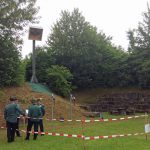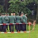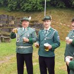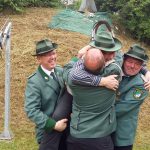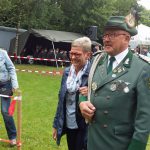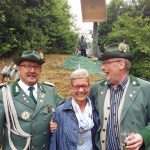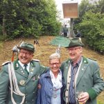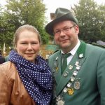 Zum Mikrofon musste Hochstein dann aber doch nicht greifen. Hans Cosack, der beim Aufstehen noch nichts von seinem Glück geahnt hatte und nur instinktiv eine schwarze Hose angezogen hatte, lieh sich vom Hauptmann den Schützenhut und ging unter die Stange. Der Vogel war schnell gerupft, um 13.08 Uhr flog der letzte Span in die Tiefe. Der 63-jährige selbständige Kaufmann, der auf der Glösinger Straße einen Wildhandel betreibt, konnte jubeln. Der neue König ist zwar Oeventroper, aber Mitglied der Uentroper Schützen, denn seine Frau Andrea stammt aus der alten Uentroper Schützendynastie Drepper. Sie war bereits 1983/84 Uentroper Königin und auch Uentroper Kaiserin im 100-jährigen Jubiläumsjahr.