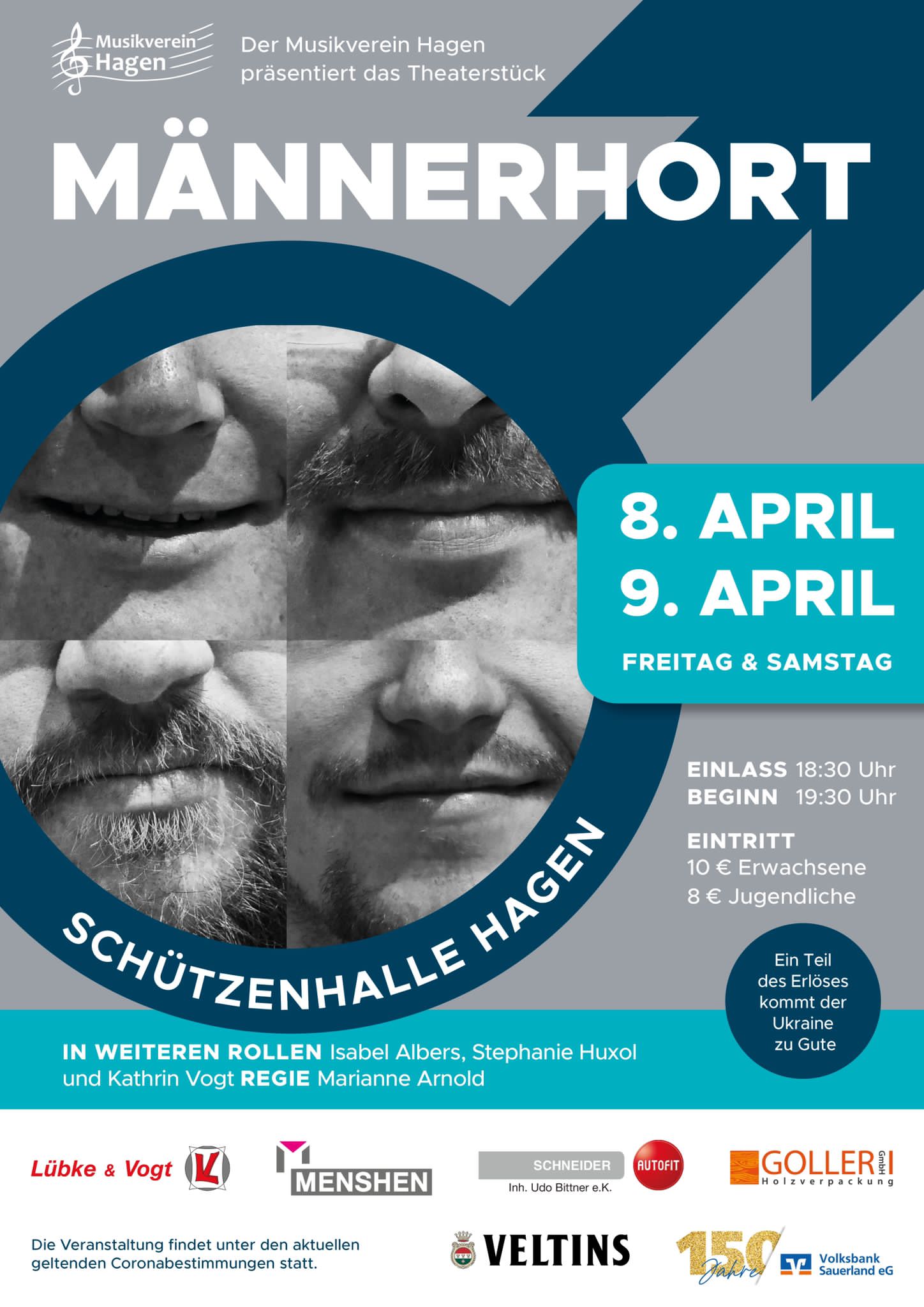Die Komödie „Männerhort“ mit all ihren erbarmungslosen Klischees und witzigen Sprüchen bringt der Musikverein Hagen am Wochenende vor Ostern auf die Bühne. Die Vorstellungen in der Schützenhalle Hagen am 08. Und 09. April beginnen jeweils um 19.30 Uhr. Tickets gibt es nur an der Abendkasse. Die Veranstaltung findet unter den geltenden Corona-Schutzmaßnahmen statt.