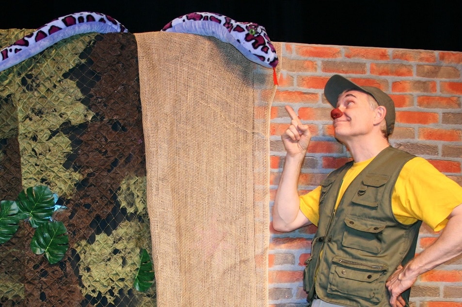 „Der verrückte Zoo“ ist ein Schauspiel vom Theater Mika & Rino für die ganze Familie mit Slapstick, lustigen Figuren und überraschenden Ideen: Im Zoo geht es bisher ganz gemütlich zu. Die Tiere liegen glücklich in der Sonne, auch Tierpfleger Rino hat nicht viel zu tun. Wäre da nicht der Zoodirektor mit seiner neuen Idee. Ab sofort sollen die Tiere sich ihr Futter selbst verdienen: Mitarbeiten oder wenigstens ein Kunststück vorführen! Tanzende Schlangen, putzende Affen oder gar eine Robbe, die einen Walzer spielt – kann das gut gehen? Eins ist es auf jeden Fall: ganz schön verrückt!