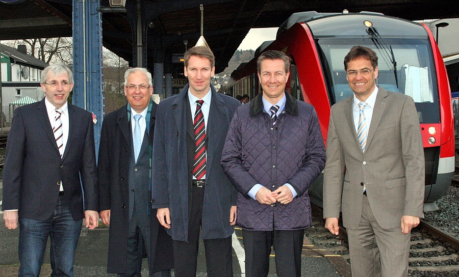 Arnsberg/Hochsauerlandkreis. Geschlossenheit zu einem der wichtigsten Verkehrsinfrastruktur-Projekte der kommenden Jahre in der Region demonstrierten jetzt Landrat Dr. Karl Schneider, Europaabgeordneter Dr. Peter Liese, Bundestagsabgeordneter Patrick Sensburg sowie die beiden Landtagsabgeordneten Klaus Kaiser und Matthias Kerkhoff. „In Sachen der Tunnelsanierung auf der Oberen Ruhrtalbahn brauchen wir kein Trostpflaster, sondern ein engagiertes Vorgehen der Bahn. Und dies bedeutet, die beiden Eisenbahntunnel in Freienohl und Oeventrop zweigleisig zu sanieren. Nur der zweigleisige Tunnelbau steht im Sinne der Erhaltung der Leistungsfähigkeit der Oberen Ruhrtalbahn“, so der gemeinsame Tenor von Landrat und Abgeordneten.