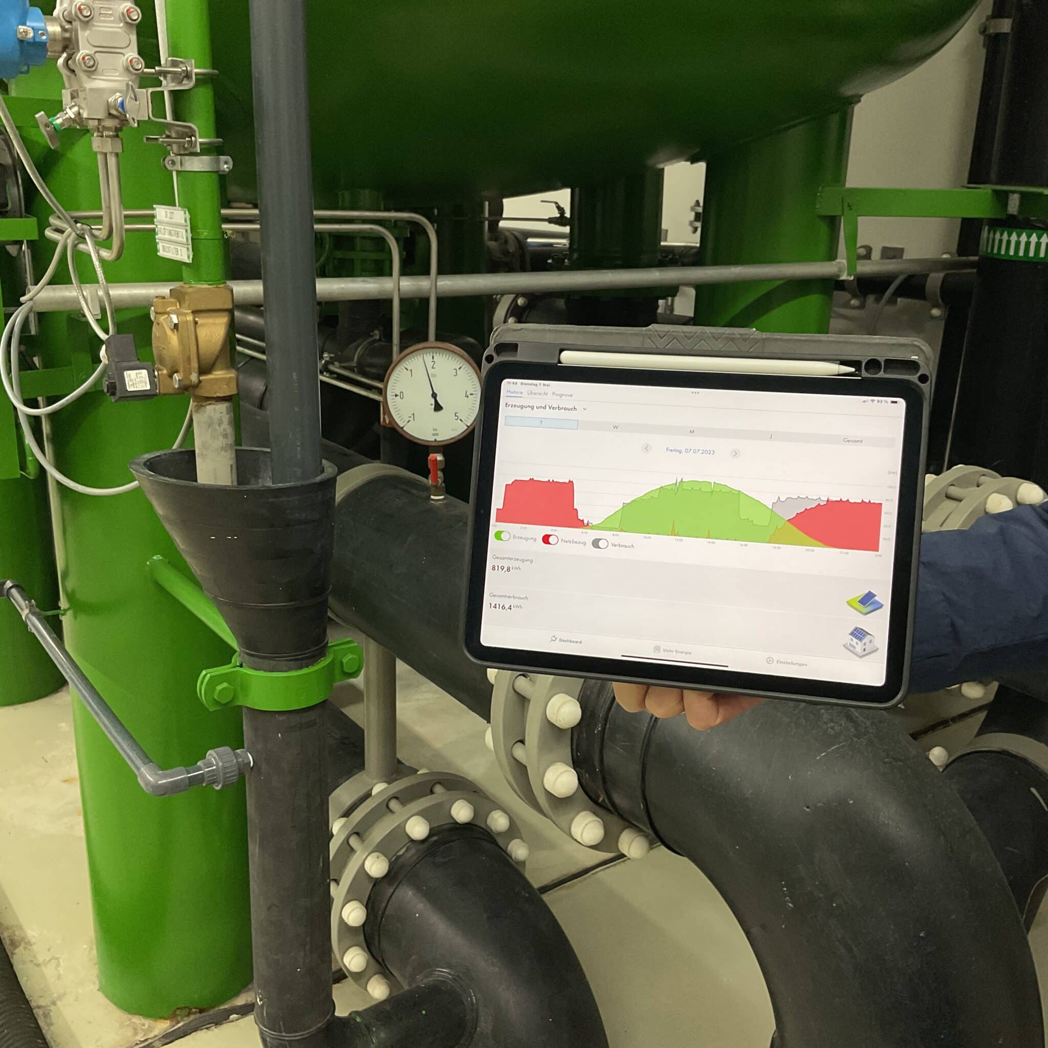 Das Was­ser­werk wur­de zudem mit einer Pho­to­vol­ta­ik-Anla­ge mit einer Leis­tung von etwa 131 kWp aus­ge­stat­tet. Die­se pro­du­ziert im Jahr rund 120 MWh Strom, der dann zu einer Abde­ckung des Eigen­be­darfs von immer­hin bis zu 20 % führt. Gleich­zei­tig kön­nen jähr­lich rund 45 Ton­nen CO2 ein­ge­spart wer­den. Auf­grund der guten Betriebs­er­fah­run­gen wird aktu­ell über­prüft, die­se Anla­ge im kom­men­den Jahr deut­lich zu erwei­tern mit dem Ziel einer Eigen­be­darfs­ab­de­ckung von bis zu 90 Prozent.