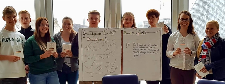 „Demo­kra­tie­bil­dung ist ein wich­ti­ger Bestand­teil in allen Fächern und wird bei uns durch sol­che Pro­jek­te beson­ders aus­ge­schärft“, so Ver­spohl. „Das Lau­ren­ti­a­num sagt ‚Herz­li­chen Glück­wunsch zum 70., lie­bes Grund­ge­setz!‘. Das Grund­ge­setz zu ken­nen gehört eben auch zur Grundbildung.“