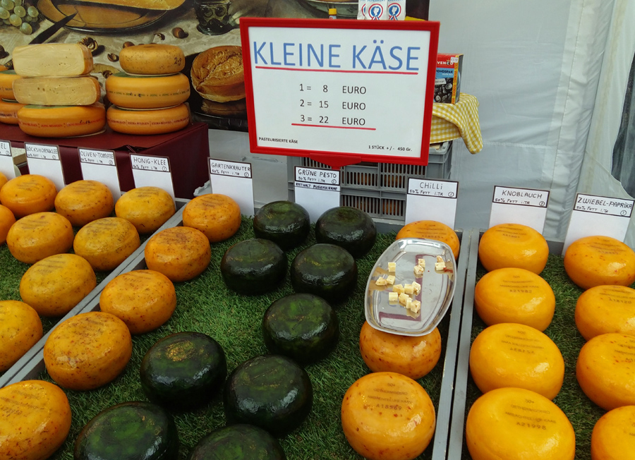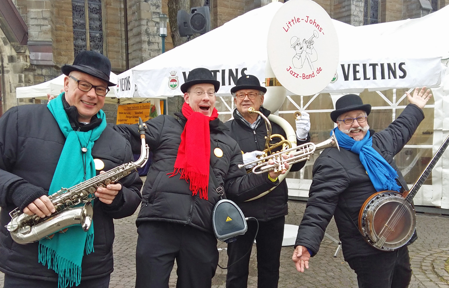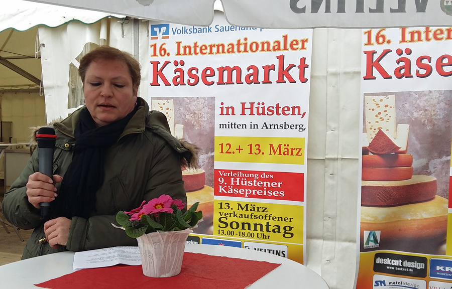 Bei Jazzmusik begrüßte Angelika Geue, die mit Rupert Schulte den Käsemarkt organisiert, am Samstag morgen bei kühlem, aber trockenem Wetter zahlreiche prominente Eröffnungsgäste. Bürgermeister Hans-Josef Vogel nannte den Hüstener Käsemarkt einen Höhepunkt des Jahreskalenders und eine dynamische Veranstaltung. Mit 16 Jahren sei der Käsemarkt zwar noch nicht ganz so alt wie die tausendjährige Hüstener Kirmes, doch sei Käse bereits seit 10.000 Jahren ein wichtiges Nahrungsmittel und heute auch ein Genussmittel, besonders, wenn es in solcher Vielfalt und handwerklicher Qualität hergestellt werde wie von den Käsemarkt-Produzenten.