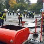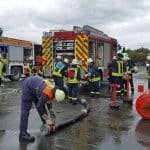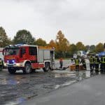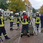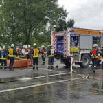 Die Übungen der Wehrleute fanden derweil nicht nur auf dem Kirmesplatz in Hüsten statt: Auch der Platz vor der St. Petri-Kirche in Hüsten wurde zu einem Übungsgelände, auf dem die angetretenen Feuerwehren unter den Augen der Wertungsrichter sowie der Leitung der Feuerwehr Arnsberg ihre Leistungen erbrachten. Der Wettbewerb war wegen des anhaltenden Regens eine nasse Angelegenheit, was den angetretenen Kräften zusätzlich Energie abverlangte. Bei einem gemeinsamen Abschluss in der Schützenhalle Hüsten wurden den ausrichtenden Feuerwehrleuten aus Hüsten noch einmal der Dank des Kreisfeuerverbandes für die Vorbereitung und Organisation des Leistungsnachweises in Hüsten ausgesprochen.