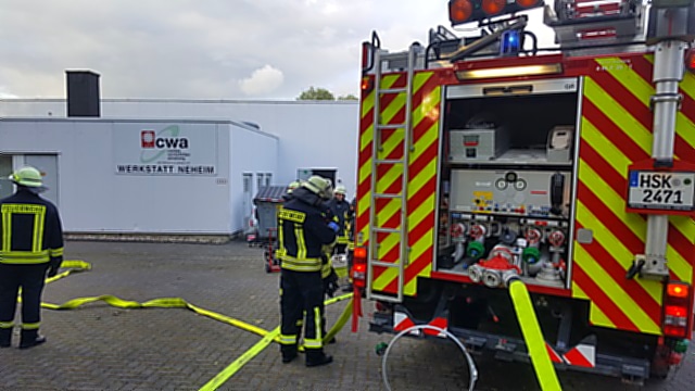 Nach rund eineinhalb Stunden war die Übung abgearbeitet. Anschließend gab es noch für alle Einsatzkräfte eine Führung durch die Caritas-Werkstätten. So konnten sich alle ein Bild von dem Gebäude machen, die Mitarbeiter erklärten den Wehrleuten, was in den Werkstätten hergestellt wird und wie viele Personen tagsüber am Standort Neheim beschäftigt sind. Anschließend wurde bei einem kleinen Snack Manöverkritik gehalten. Die Caritas-Werkstätten bedankten sich beim Löschzug Neheim für den Besuch. Die Feuerwehr gab den Dank zurück und würde sich freuen, hier in nächster Zeit noch einmal üben zu können.