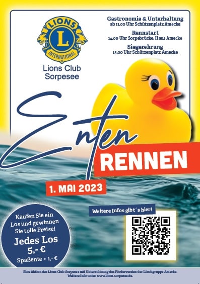Die Organisatoren danken allen Unterstützern, die das Entenrennen und das Maifest erst möglich machen und freuen sich auf zahlreiches Erscheinen, denn der Erlös des Entenrennens ist für die Förderung von Projekten der Kinder und Jugendhilfe. Den Erlös des Festes teilen sich die Fördervereine der Amecker Feuerwehr und des Lions Clubs.