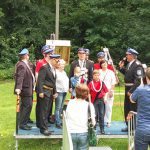 Wesentlich schneller ging es zuvor bei den Jungschützen. Hier jubelte Stephan Deimel bereits nach dem 85. Schuss. Der 23-jährige Sohn des neuen Königs, der in Würzburg Biologie studiert, hat bereits Regentschaftserfahrung, denn 2003 wurde er Kinderkönig. Diese Würde sicherte sich in diesem Jahr der neunjährige Tammo Jänsch, der an diesem Schützenfestmontag auch erstmals um 6 Uhr morgens mit dem Tambourcorps mitmarschiert ist, wie seine Mutter stolz berichtete. Als Kinderkönigin wird Tammo die zehnjährige Maria Brinkschulte zur Seite stehen.