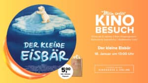 Arnsberg. Kinoerlebnisse für die Jüngsten: Die erfolgreiche Kinoreihe „Mein erster Kinobesuch“ kommt jetzt auch ins Residenz Kinocenter. Ab Sonntag, 18. Januar, richtet sich das Angebot speziell an Kinder, die zum ersten Mal Kinoluft schnuppern möchten. Los geht es um 13 Uhr mit dem Animationsfilm „Der kleine Eisbär“.