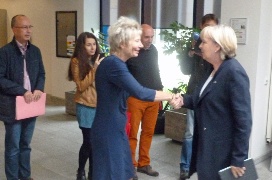 Die Arns­ber­ger Bezirks­re­gie­rung hat nach wie vor die lan­des­wei­te Zustän­dig­keit für die Ver­tei­lung der neu ange­kom­me­nen Flücht­lin­ge auf die Not­un­ter­künf­te und auch für die Ver­tei­lung aus den Lan­des­ein­rich­tun­gen auf die Kom­mu­nen. Den ande­ren Bezirks­re­gie­run­gen bleibt als Auf­ga­be die Akqui­se von Not­un­ter­künf­ten in ihrem Gebiet und die Koor­di­na­ti­on vor Ort. Die Zahl die­ser Not­un­ter­künf­te – wie etwa der Pes­ta­loz­zi-Schu­le in Hüs­ten – schnellt der­zeit dra­ma­tisch nach oben. Waren es vor den Som­mer­fe­ri­en noch etwa 20, prä­sen­tier­te Dia­na Ewert Mon­tag mit­tag die aktu­el­le Zahl von 129, von denen eini­ge gera­de erst dazu gekom­men waren. Und die Ent­wick­lung ist wei­ter im Fluss. Das Land NRW habe in fünf Erst­auf­nah­me­ein­rich­tun­gen (EAE) und 21 Zen­tra­len Unter­brin­gungs­ein­rich­ti­gen (ZUE) eine Regel­ka­pa­zi­tät von 10.695 Plät­zen, berich­tet Dr. Chris­ti­an Chmel-Men­ges. Mit den Not­un­ter­künf­ten sei­en die Kapa­zi­tä­ten aktu­ell auf 37.146 Plät­ze erwei­tert wor­den, von denen 36.533 Plät­ze besetzt sei­en, so dass nur ein klei­ner Puf­fer blei­be. Noch im Jahr 2011, so der Pres­se­spre­cher, sei­en 1800 Plät­ze lan­des­weit aus­rei­chend gewesen.