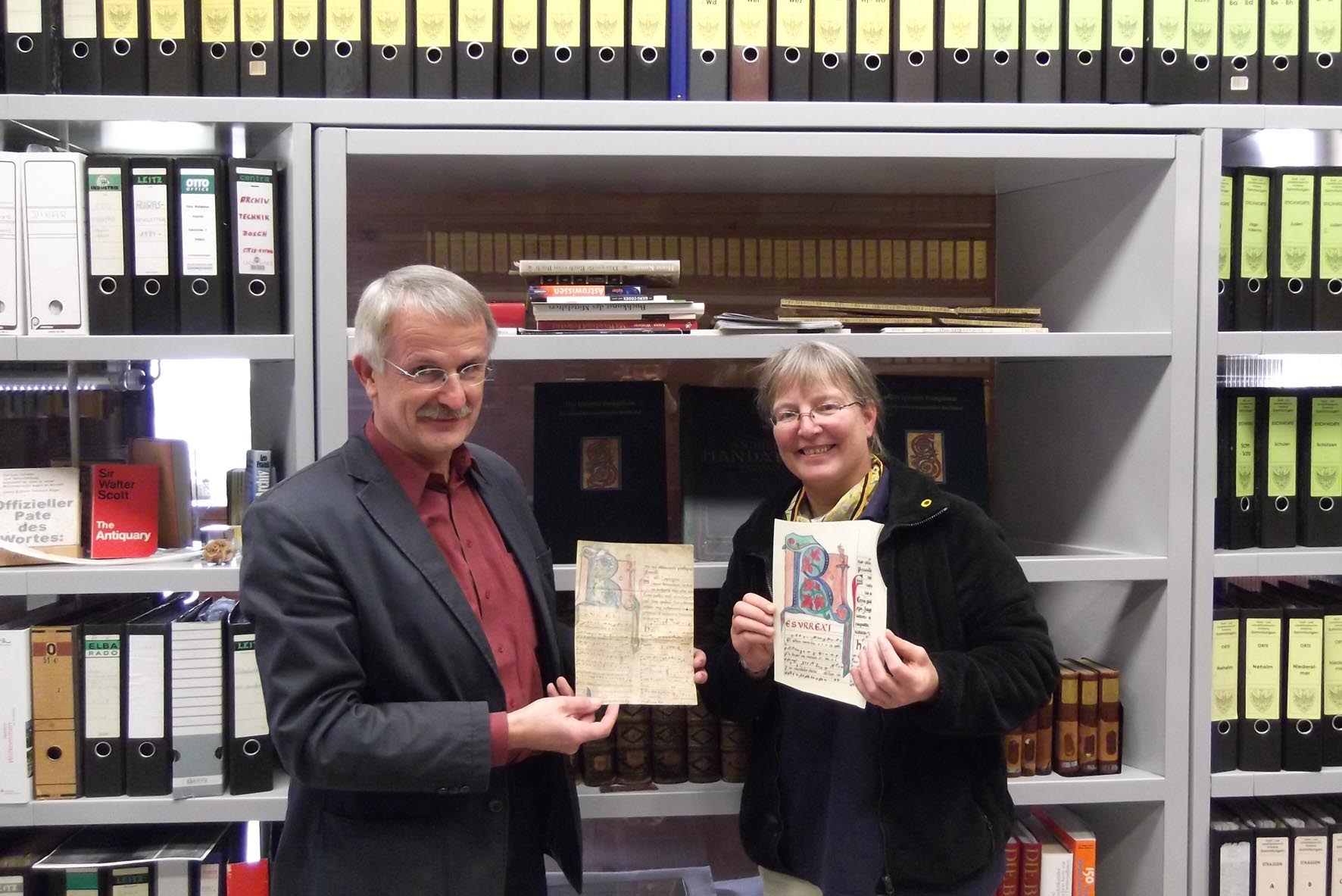 Arnsberg. Im Pfarrarchiv der Arnsberger Propsteigemeinde, dem ehemaligen Kloster Wedinghausen, wurde vor einigen Jahren im Innenband eines alten Buches ein illuminiertes, d.h. mit Buchmalerei verziertes Notenblatt aus Pergament gefunden. Es gilt als eines der ältesten Überreste von Wedinghauser Handschriften, das eher zufällig erhalten ist, weil dieses Pergamentblatt später als Umschlag genutzt und dabei verschmiert und verdorben wurde. Darum blieb ihm Untergang oder Verschleppung erspart, es wurde eben als Bucheinband „recycled“ und nach Jahrhunderten dort von dem aufmerksamen Küster Winfried Orthmann im Pfarrarchiv wiederentdeckt.