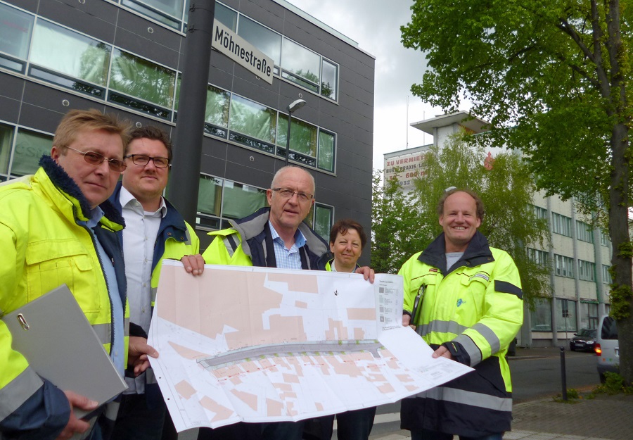 Die bauausführende Arbeitsgemeinschaft Josef Eley Bauunternehmung GmbH/ Strassing Limes Bau GmbH wird auf der Möhnestraße in den nächsten Wochen zunächst die Hausanschlüsse für Strom, Gas und Wasser im Ausbaubereich zwischen Ordensmeisterstraße und Schleifmühlenweg erneuern. Anschließend werden die Gehwege und die Fahrbahn neu hergestellt. Die Arbeiten für diesen letzten Bauabschnitt sollen bis Mitte 2017 abgeschlossen sein.