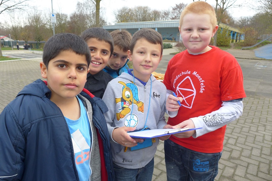 Im Anschluss an die Aktion hatten alle die Möglichkeit, Waffeln für einen guten Zweck zu kaufen. Über 300 Euro wurden so eingenommen, die den neuen asylsuchenden Schülerinnen und Schülern an der Moosfelder Grundschule in Form von Tornisters und Schulutensilien zu Gute kommen werden. Parallel lief eine Unterschriftenaktion, bei der sich alle dazu verpflichteten, gemeinsame Projekte zu entwickeln, sich gegen Gewalt und diskriminierende Äußerungen zu wenden und Toleranz zu üben. Denn die Schule strebt den Titel „Schule ohne Rassismus, Schule mit Courage“ an. Nach dieser sehr gelungenen Aktion werden viele weitere Höhepunkte folgen. Man darf gespannt sein.