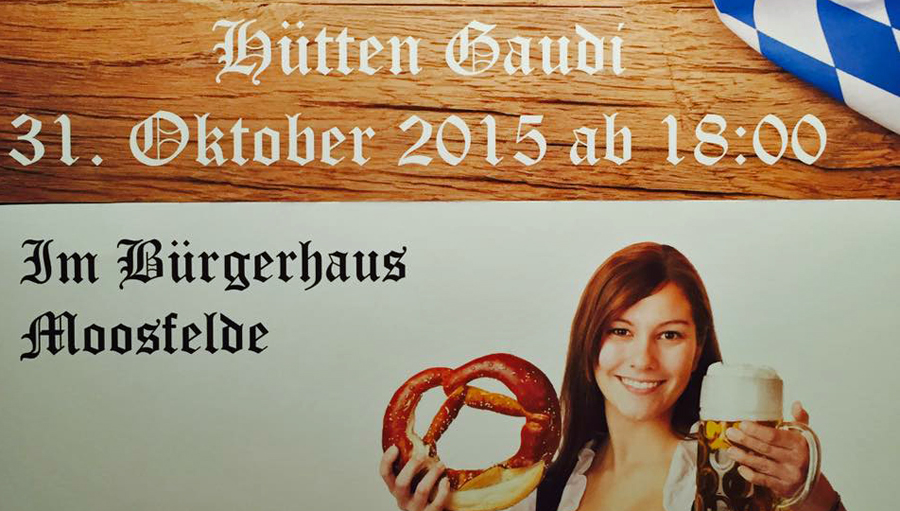 2015.10.29.Arnsberg.HüttengaudiMoos­fel­de. Die in die­sem Jahr viel­leicht letz­te Mög­lich­keit zum Tra­gen des zwi­schen­zeit­lich auch im Sau­er­land hei­misch gewor­de­nen Dirndls oder der feschen Leder­ho­se bei den Her­ren bie­tet sich am Sams­tag, 31. Okto­ber ab 18 Uhr im gro­ßen Saal des Bür­ger­hau­ses Moos­fel­de. Der orts­an­säs­si­ge Schüt­zen­ver­ein lädt, bei frei­em Ein­tritt, alle Freun­de zum Fei­ern der 1. Moos­fel­der Hüt­ten­gau­di ein. „Mit der ers­ten Ver­an­stal­tung die­ser Art in Moos­fel­de stel­len die Schüt­zen all jenen eine inter­es­san­te Alter­na­ti­ve zur Ver­fü­gung, die sich von den zahl­rei­chen par­al­lel statt­fin­den­den Hal­lo­ween-Par­tys nicht unbe­dingt ange­spro­chen füh­len,“ so Kai Kuh­nert, 1. Kas­sie­rer und Pres­se­wart beim Schüt­zen­ver­ein Moos­fel­de e.V. „Recht herz­lich ein­ge­la­den sind selbst­ver­ständ­lich auch inter­es­sier­te Gäs­te ohne Trach­ten­klei­dung.“ Neben frisch gezapf­tem Land­bier vom Fass, lecke­rem Wei­zen sowie den unter­schied­lichs­ten Spi­ri­tuo­sen haben die Gar­ten­städ­ter eine zünf­ti­ge Brot­zeit vor­be­rei­tet. Es sind Weiß­würs­te, Leber­kä­se, Bay­risch Kraut und Bre­zeln im Ange­bot. Damit die erfor­der­li­che Gau­di auch unein­ge­schränkt auf­kom­men kann, haben sich die Schüt­zen des Stadt­teils im Grü­nen dar­über hin­aus ein abwechs­lungs­rei­ches Rah­men­pro­gramm ein­fal­len lassen.