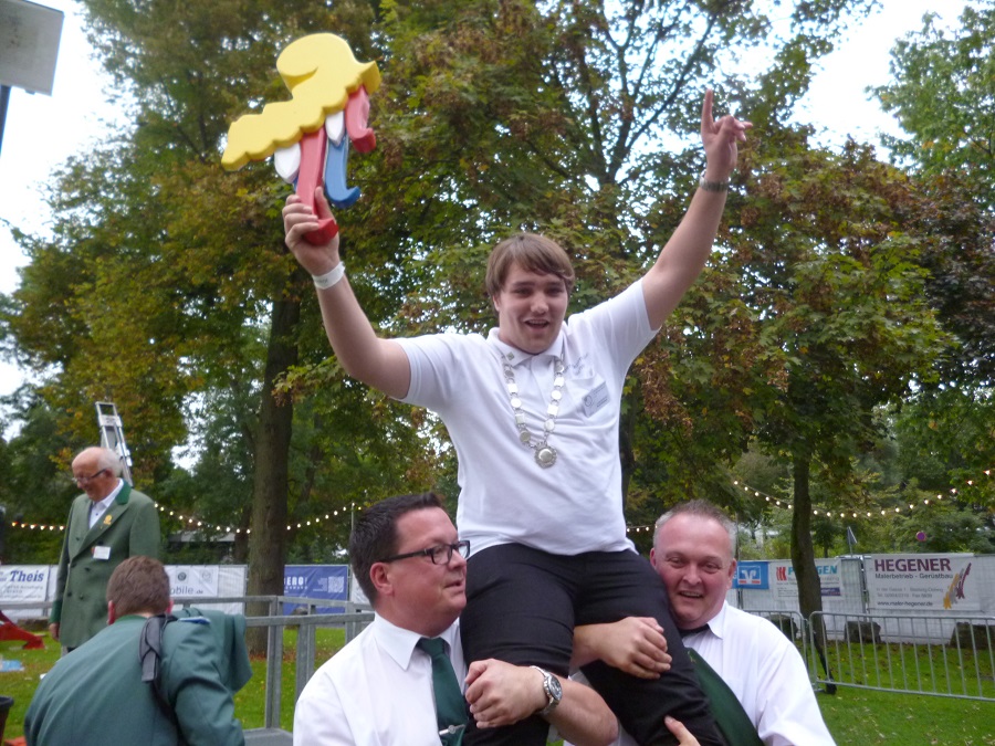 Arnsberg, Das 21. Kreisschützenfest des Kreisschützenbunds Arnsberg läuft und hat auch schon seine erste Entscheidung. Gerade noch rechtzeitig vor dem ersten schweren Wolkenbruch sicherte sich Moritz Westphal den Titel des Kreisjugendschützenkönigs. Der 17-Jährige kommt von der Schützenbruderschaft St. Michael Hachen und damit ging der Titel, wie schon vor drei Jahren, wieder in das Amt Hüsten.
