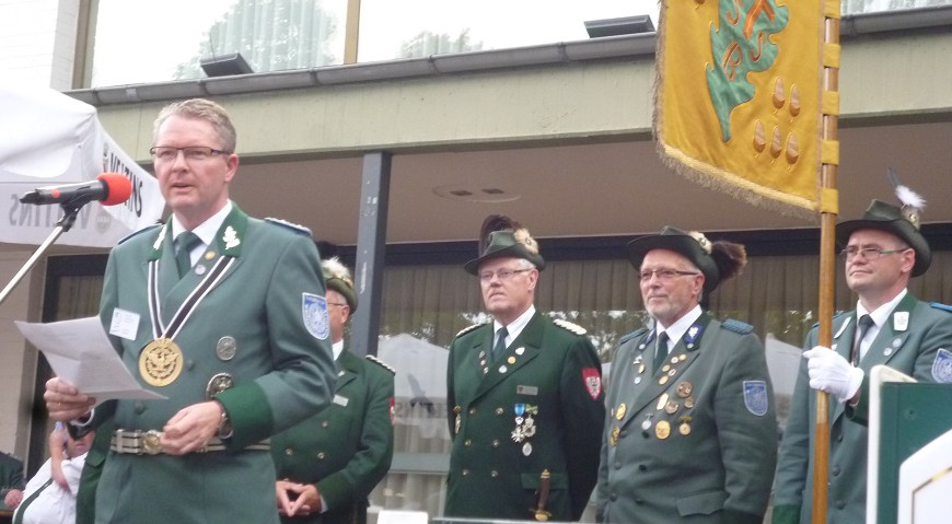 Im Anschluss an einem Empfang im Alten Rathaus, bei dem die Stadt Arnsberg und Bürgermeister hans-Josef Vogel als Schirmherr den Kreisschützenbund begrüßt hatte, eröffnete Kreisoberst Dietrich-Wilhelm Dönneweg das Kreisschützenfest auf dem schon gut gefüllten Festplatz in der Promenade und kündigte an, dass jetzt in den Modus „Selbstläufer“ umgeschaltet werden könne, denn schließlich habe die Arnsberger Bürgerschützengesellschaft als Gastgeber alles wohl durchdacht und bestens vorbereitet. Arnsbergs Hauptmann Peter Erb ließ seinem „Endlich geht’s los!“ ein dreifach donnerndes Horrido folgen. Donnernd kündigte sich allerdings auch ein Unwetter an, dass aber dankenswerter Weise wartete, bis der neue Jugendschützenkönig ermittelt und auch proklamiert war.