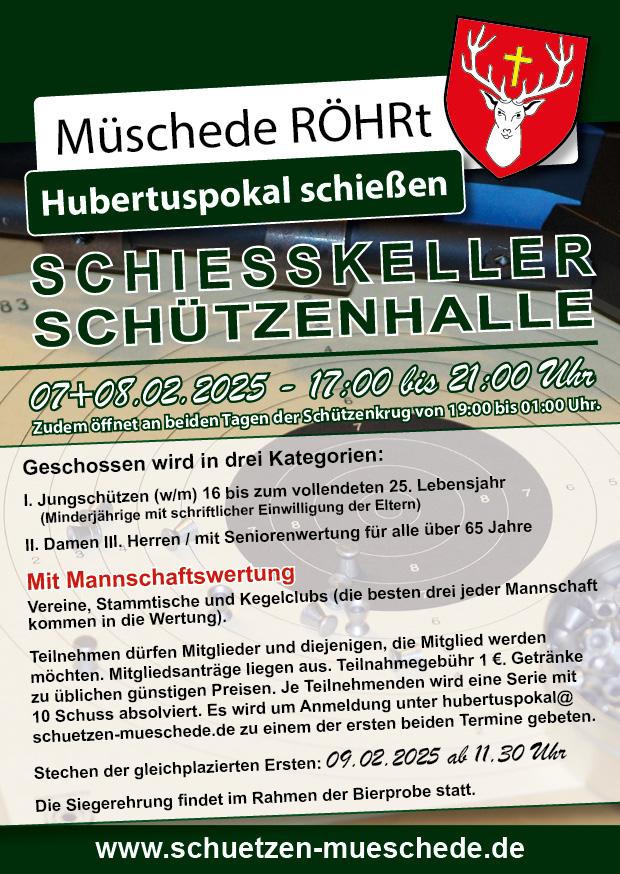 Die Müscheder Schützen bitten um Anmeldung zu einem der ersten beiden Termine, möglichst auch mit Angabe der Uhrzeit, unter hubertuspokal@schuetzen-mueschede.de.
