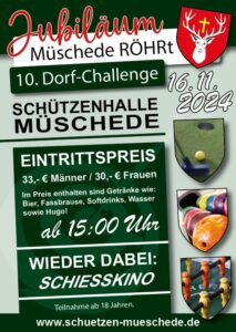 Starten wird die Veranstaltung am 16.11. um 15.00 Uhr in und an der Schützenhalle. Alle Teams werden bereits um 14.15 Uhr vor Ort sein. Nach Abschluss der Wettbewerbe finden ab ca. 20.00 Uhr die Siegerehrung und die Siegesfeier statt, in der die ersten Plätze prämiert werden. Die Siegerinnen und Sieger erhalten wieder wertvolle Preise.