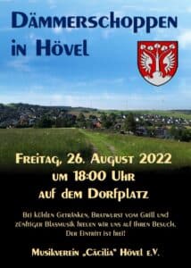 Sundern/Hövel. Unter der Leitung von Christoph Goeke lädt der Musikverein Hövel wieder zum Dämmerschoppen am Freitag, den 26.08.2022 ein.