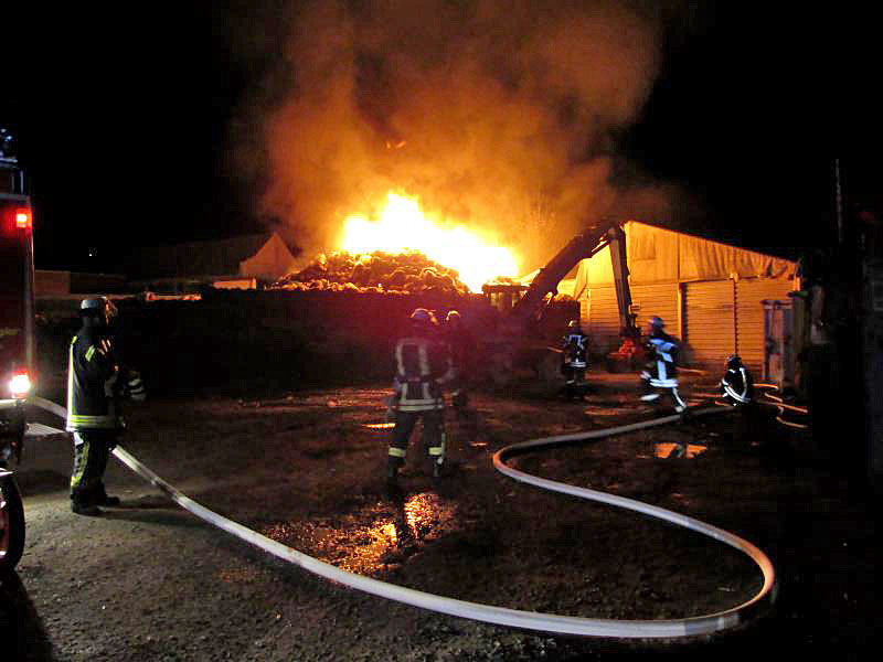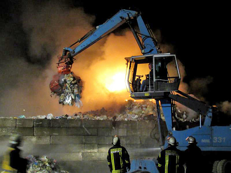 Sundern. Gegen 21.30 Uhr am Mittwoch abend wurde der Feuerwehr-Leitstelle ein Feuerschein im Lockweg gemeldet. Aus bisher unbekannter Ursache war bei einem Entsorungsbetrieb ein Zwischenlager für die Gelben Säcke in Brand geraten. Das Feuer konnte sich zunächst schnell ausbreiten. Der Einsatzleiter Andreas Siebert erhöhte das Alarmstichwort und ließ nachalarmieren. Durch das schnelle Eingreifen und den massiven Löscheinsatz konnte der Brand schnell unter Kontrolle gebracht werden. Der Löschzug war mit rund 35 Einsatzkräften vor Ort. Mittels des Radladers des Betreibers wurde der Müllhaufen nach und nach abgetragen und abgelöscht. Bis auf die verbrannten Müllsäcke ist es zu keinem Schaden gekommen, so Michael Harmann, Pressesprecher der Feuerwehr der Stadt Sundern.
