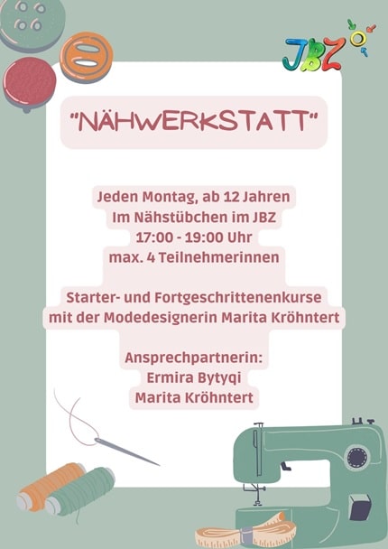 Arnsberg. Jeden Montag zwischen 17:00 Uhr und 19:00 Uhr nähen im Jugendbegegnungszentrum Liebfrauen Arnsberg (JBZ) Mädchen und junge Frauen mit der Modedesignerin Marita Kröhntert. Im Moment sind zwei Plätze frei geworden. Das Angebot ist kostenlos. Interessierte zwischen 12 und 22 Jahren können sich per Tel. (02931 16409) oder E‑Mail (e.bytyqi@pr-arnsberg.de) anmelden, oder einfach vorbeikommen.