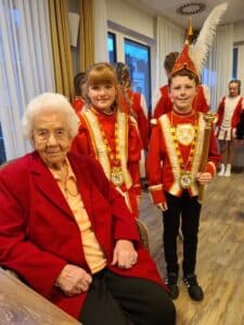 Die Mädchen der Juniorengarde präsentierten gekonnt und elegant ihren Gardetanz. Hingerissen waren die Seniorinnen und Senioren auch von den vier- bis sechsjährigen Mitgliedern der Minigarde, die ebenfalls für ihre charmante Darbietung mit stürmischem Applaus belohnt wurden. Und dann wurde dem Haus noch eine besondere Ehre zuteil: Auch das diesjährige Kinder-Prinzenpaar bestehend aus Sophia Graff und Paul Stamen machte den Seniorinnen und Senioren seine Aufwartung.