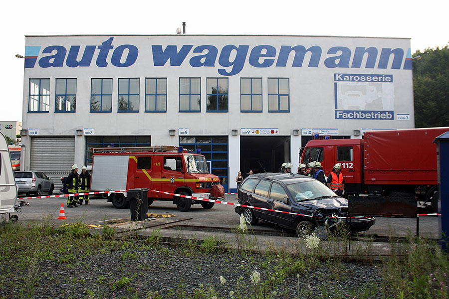 Neheim. „Verkehrsunfall mit eingeklemmter Person bei der Firma Wagemann in Neheim“ – so lautete am Freitag, den 01. August die Übungsvorgabe für die Neheimer Feuerwehr. Ein Anrufer hatte dies der Leitstelle zuvor gemeldet, so die Übungsannahme. Bei der Bewältigung dieses Szenarios wurde der Löschzug Neheim von einer Gruppe der Feuerwehr aus Werl-Sönnern sowie von Kräften des Ortsvereins Neheim-Hüsten des Deutschen Roten Kreuzes (DRK) unterstützt, die im Rahmen der gemeinsamen Übung die Kooperation mit den Neheimer Blauröcken erproben wollten.