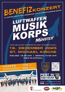 Arnsberg/Neheim. Auch in diesem Jahr haben sich die Neheimer Schützen auf die Fahne geschrieben, Gutes zu tun: Am Dienstag, 16.12.2025 gastiert das Luftwaffenmusikkorps Münster zu einem Konzert in der St. Michael Kirche in Neheim.