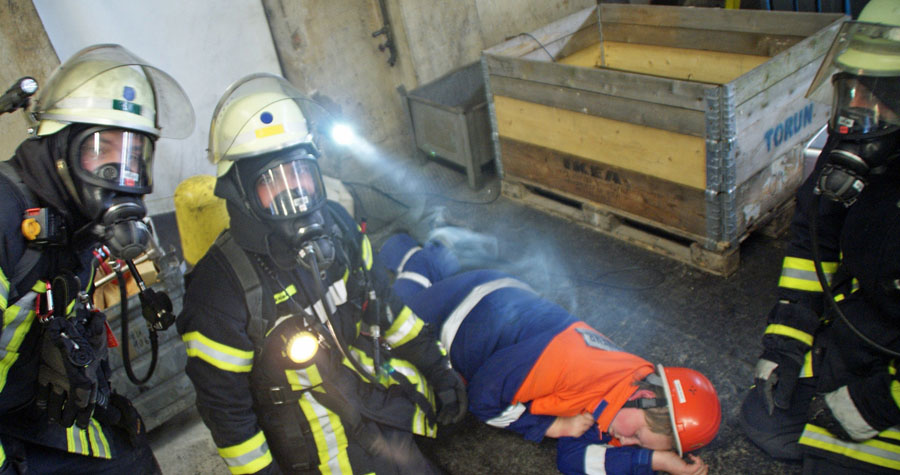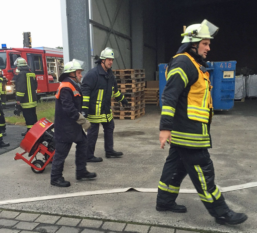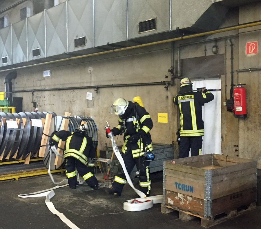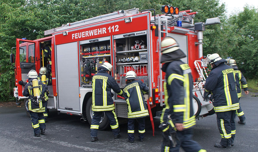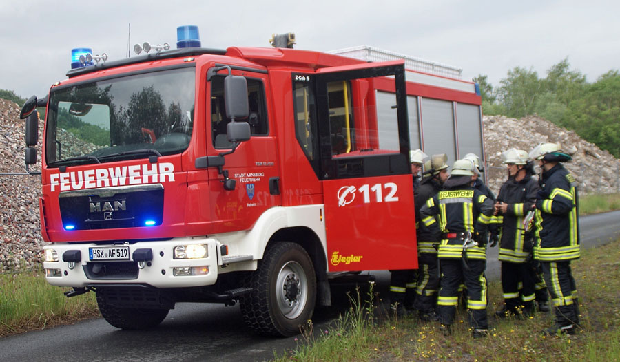 Neheim. Im Rahmen einer Einsatzübung probte der Löschzug Neheim der Arnsberger Feuerwehr jetzt den Ernstfall bei der Firma Greve Rohre in der Neheimer Möhnestraße. Das Szenario dieser Übung, mit der schwerpunktmäßig die Menschenrettung trainiert wurde, sah vor, dass zwei Personen in einem der Technikräume, die an die Produktionshallen der Firma anschließen, vermisst wurden. Umgehend machte sich ein Einsatz-Trupp unter schweren Atemschutz mit einem Schlauchpaket und einem mobilen Rauchverschluss auf zur Personensuche und ‑rettung. Nach kurzer Zeit waren die Personen geortet und wurden von dem Trupp ins Freie gebracht. Zeitgleich wurde die Brandbekämpfung in Angriff genommen. Nachdem das Feuer gelöscht worden war, wurden die Produktionshallen mit Hilfe eines Hochleistungslüfters von dem Übungs-Brandrauch befreit.
