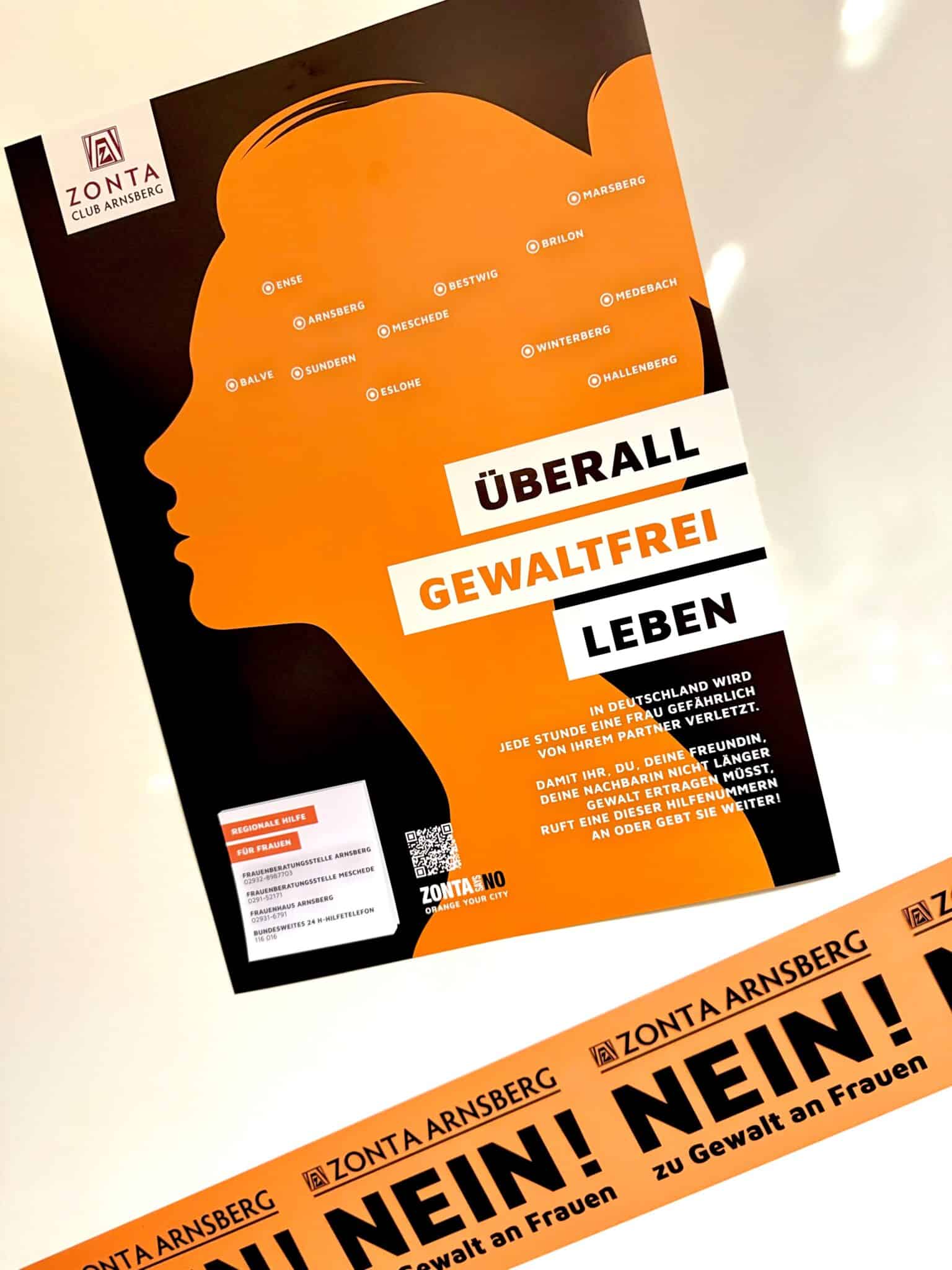 Und noch immer mangelt es auch im HSK an Frauenhausplätzen, Beratungskapazitäten und geeigneten Präventionsmaßnahmen. „Anstelle von Hilfe, Schutz, Solidarität und Rechtssicherheit erfahren Betroffene zu häufig eine Täter-Opfer-Umkehr und Stigmatisierung. Dieses gesellschaftliche Versagen endet statistisch gesehen jeden zweiten bis dritten Tag für eine Frau in Deutschland tödlich“, so die Präsidentin des ZONTA Club Arnsberg, Renate Jaschke. „Gewalt gegen Frauen ist eine Menschenrechtsverletzung, die wir nicht tolerieren dürfen. Mit unserer Aktion wollen wir nicht nur Bewusstsein schaffen, sondern auch Mut machen: Mut hinzusehen, Mut einzugreifen, und Mut, Hilfe zu suchen.“