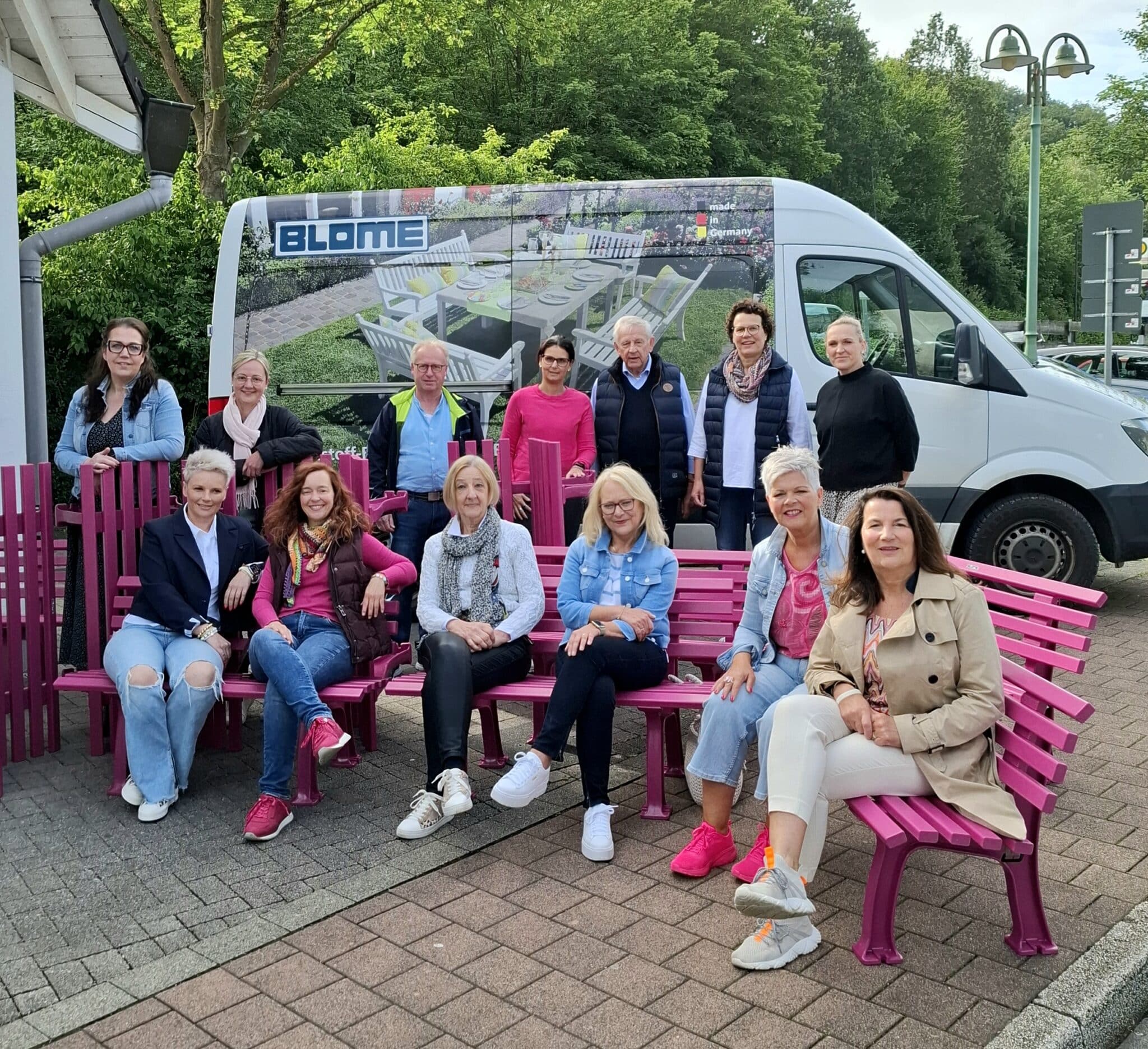 Nach der ersten Sitzprobe am Futur S wanderten die in knalligem Pink gehaltenen Bänke in die Fußgängerzone und bereichern nun maßgeblich das Stadtbild. Damit das auch sehr lange so bleibt, haben die ansässigen Einzelhändler Patenschaften für „ihre“ Bänke übernommen, die sie während ihrer Öffnungszeiten vor die Geschäfte stellen.