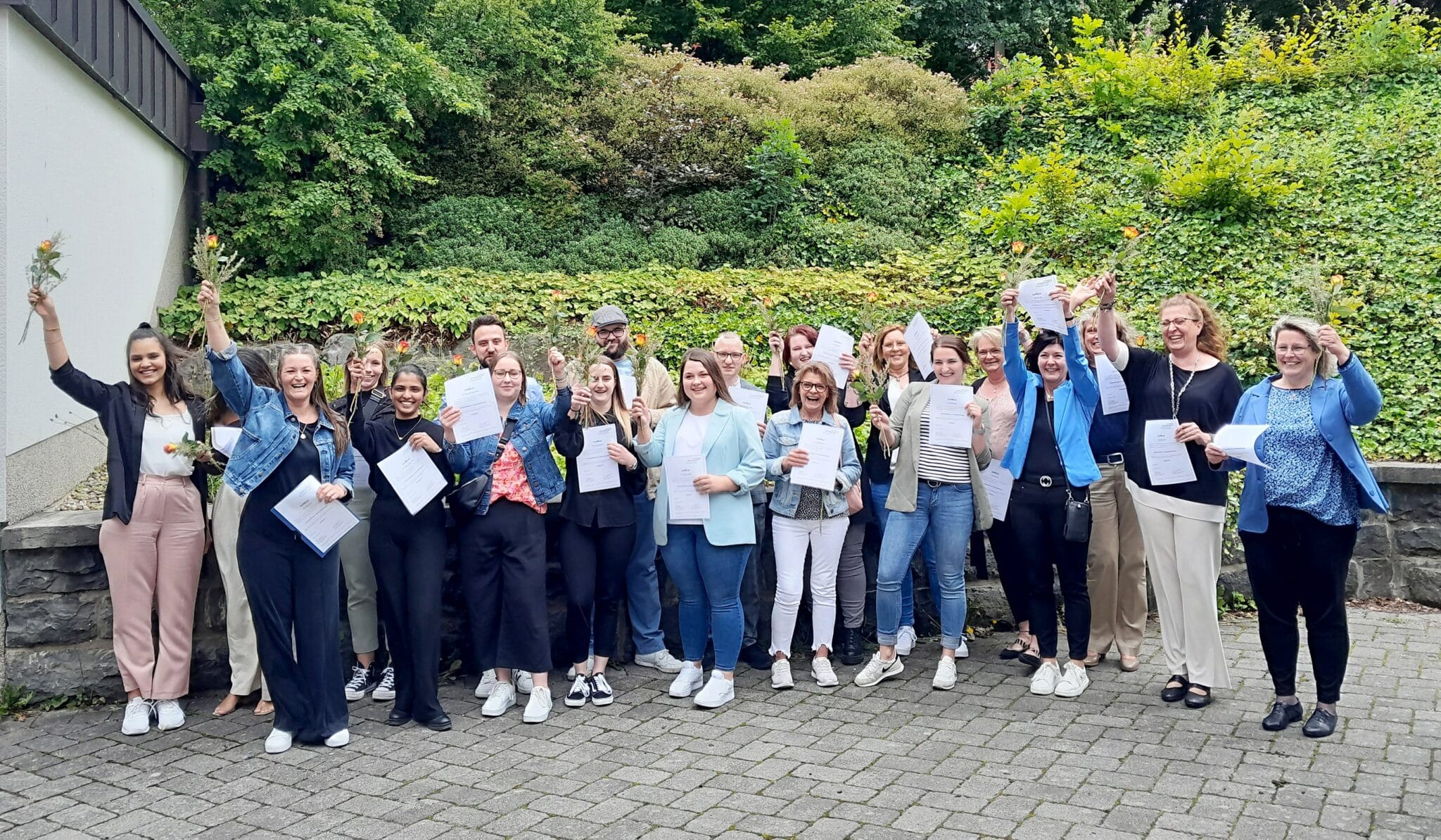 Meschede. Am Standort Meschede der Bildungsakademie Hochsauerland wurden jetzt die neuen Praxisanleiterinnen und ‑anleiter verabschiedet. Insgesamt 20 Männer und Frauen hatten zuvor die Abschlussprüfungen der Weiterbildung zur Praxisanleitung im Gesundheitswesen an der Bildungsakademie mit großem Erfolg bestanden und machen sich jetzt auf den Weg, neue Auszubildende in den Pflegeberufen zu unterstützen. Der Weiterbildung vorausgegangen war die Ausbildung in den Grundqualifikationen der Gesundheits- und Krankenpflege sowie in der Alten- und Kinderkrankenpflege. Ebenso nahmen auch Fachkräfte aus dem Bereich der Operationstechnischen Assistent:innen teil.