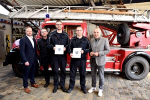 Arnsberg. In einer kleinen Feierstunde wurden nach der Absolvierung der fehlenden Lehrgänge sowie der Beförderung zu Stadtbrandinspektoren durch Dennis Pingel, jetzt Sascha Ricke und Kai Spiegel durch Bürgermeister Ralf Paul Bittner und im Beisein des 1. Beigeordneten Christopher Hilverling zu ehrenamtlichen stellvertretenden Leitern der Feuerwehr Arnsberg und somit zu Ehrenbeamten der Stadt Arnsberg ernannt.