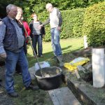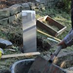 Hüsten. Pünktlich zum Hüstener Schnadegang am kommenden Samstag ist der neue Grenzstein fertig geworden, der unter der Leitung der Hüstener Bildhauerin Stefanie Schröter von Jugendlichen aus dem Hüstener Jugendzentrum geschaffen worden ist. Willi Tillmann als stellvertretender Vorsitzender des Heimatkreises Freiheit Hüsten e. V. hat zusammen mit dem Vorstand und der Künstlerin Stefanie Schröter den neuen Grenzstein auf der Grenze zwischen Müschede und Hüsten in sein Betonfundament gesetzt.