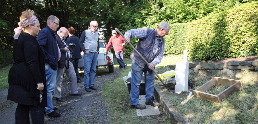 Hüsten. Pünktlich zum Hüstener Schnadegang am kommenden Samstag ist der neue Grenzstein fertig geworden, der unter der Leitung der Hüstener Bildhauerin Stefanie Schröter von Jugendlichen aus dem Hüstener Jugendzentrum geschaffen worden ist. Willi Tillmann als stellvertretender Vorsitzender des Heimatkreises Freiheit Hüsten e. V. hat zusammen mit dem Vorstand und der Künstlerin Stefanie Schröter den neuen Grenzstein auf der Grenze zwischen Müschede und Hüsten in sein Betonfundament gesetzt.