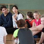 Nach dem „Unterricht“ und einer kurzen Pause wechselte der Schauplatz. Vom Laurentianum ging es zum Sauerlandtheater. Stand in der Schule das Umfeld und der Alltag der Schüler und Schülerinnen sowie das gegenseitige Kennenlernen im Vordergrund, so konnten die Laurentianer im Theater das Aufwärmen, die Probe und Teile des Programms der Tänzer und Tänzerinnen des NRW-Juniorballetts kennenlernen. Nachdem Kleingruppen kurz aus den einzelnen Gruppen berichtet und „ihre Tänzer“ vorgestellt hatten, folgte eine kurze Einführung in das Balletttraining durch den Manager. Das Training für die Tänzer und Tänzerinnen leitete der Ballettmeister, der früher selber Profitänzer war. Für die Zuschauer war überraschend, mit wie wenigen französischen Worten und Handzeichen die Choreografie an die Tänzer vermittelt wurde. Und beeindruckt hat alle auch die unglaubliche Gelenkigkeit der Tänzer und Tänzerinnen. Häufig fiel in den Reihen der Zuschauer der Kommentar: „Das ist ja total beeindruckend!“.