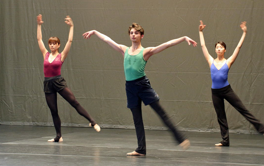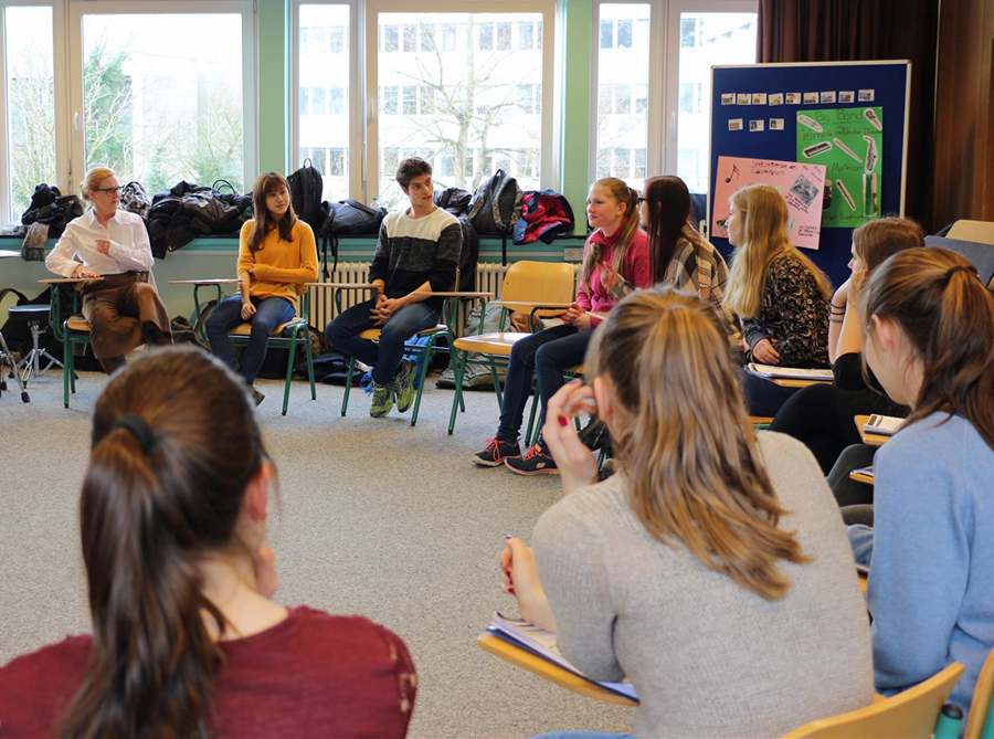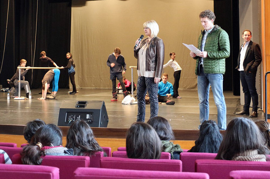 Nach dem „Unterricht“ und einer kurzen Pause wechselte der Schauplatz. Vom Laurentianum ging es zum Sauerlandtheater. Stand in der Schule das Umfeld und der Alltag der Schüler und Schülerinnen sowie das gegenseitige Kennenlernen im Vordergrund, so konnten die Laurentianer im Theater das Aufwärmen, die Probe und Teile des Programms der Tänzer und Tänzerinnen des NRW-Juniorballetts kennenlernen. Nachdem Kleingruppen kurz aus den einzelnen Gruppen berichtet und „ihre Tänzer“ vorgestellt hatten, folgte eine kurze Einführung in das Balletttraining durch den Manager. Das Training für die Tänzer und Tänzerinnen leitete der Ballettmeister, der früher selber Profitänzer war. Für die Zuschauer war überraschend, mit wie wenigen französischen Worten und Handzeichen die Choreografie an die Tänzer vermittelt wurde. Und beeindruckt hat alle auch die unglaubliche Gelenkigkeit der Tänzer und Tänzerinnen. Häufig fiel in den Reihen der Zuschauer der Kommentar: „Das ist ja total beeindruckend!“.