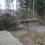 Im Herdringer Stockhausenweg, in der Kardinal-Jäger-Straße auf Bergheim und in Niedereimer in der Straße Zum Eichhahn beschädigten umgestürzte Bäume Hausdächer. Die Wehrleute befreiten die Gebäude von dieser ungewollten Last. Zudem beschädigte der starke Wind weitere Hausdächer in Arnsberg in der Straße Unterm Römberge und in der Herdringer Dungestraße. Außerdem löste der Sturm das Dach eines Carports am Neheimer Besenberg. Auch hier war der Einsatz der Feuerwehr erforderlich, um weitere Beschädigungen an den Gebäuden und in der Umgebung durch umherfliegende Dachteile zu verhindern.
