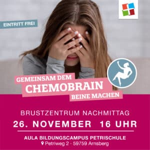 Im Fokus steht diesmal das Motto „Gemeinsam dem Chemobrain Beine machen!“ Denn eine Chemotherapie kann unter Umständen Auswirkungen auf die kognitiven Fähigkeiten haben. Die Gedächtnistrainerin Susanne Ducrée-Schütte wird unterstützende Übungen vorstellen, die im Alltag helfen können beispielsweise Wortfindungsprobleme oder die kleinen, vergesslichen Momente zu durchbrechen und somit das Selbstbewusstsein zu stärken. Sie gibt wertvolle Tipps und vermittelt interessante Informationen, wie Betroffene ihr Gedächtnis sanft trainieren und ihre kognitiven Fähigkeiten stabilisieren können.