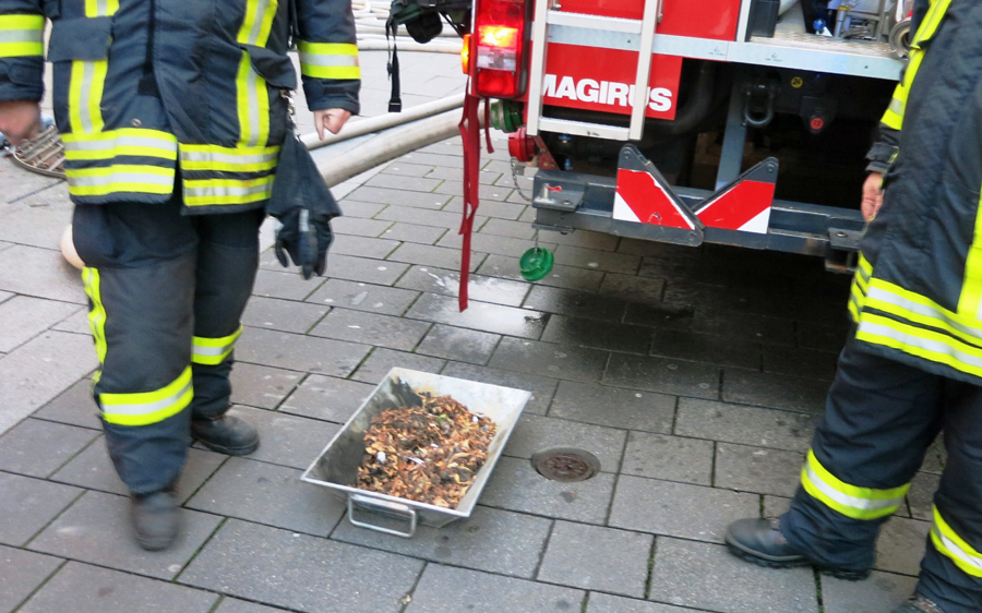 Der Trupp entfernte das Laub mit einer so genannten Schuttmulde aus dem Lichtschacht und löschte es im Freien ab. Anschließend wurde der Heizungskeller ausgiebig gelüftet und mit einer Wärmebildkamera auf verbliebene Glutnester kontrolliert. „Für die Einsatzdauer wurde die Einsatzstelle in der belebten Fußgängerzone weiträumig abgesperrt. Da zu keiner Zeit eine Gefährdung im Verkaufsbereich des betroffenen Geschäftshauses bestand, war eine Evakuierung des Gebäudes nicht notwendig,“ so Unterbrandmeisterin Christina Severin, stellv. Pressesprecherin der Arnsberger Wehr. Die rund 30 Einsatzkräfte konnten nach etwa eineinhalb Stunden den Einsatz beenden und wieder in ihre Standorte einrücken.